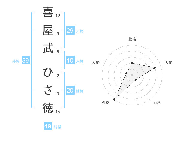 喜屋武 ひさ徳さんの外格は39画の5点!