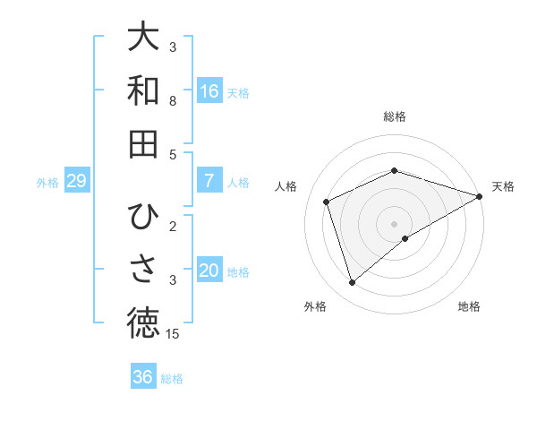 大和田 ひさ徳さんを姓名の画数から五運を鑑定