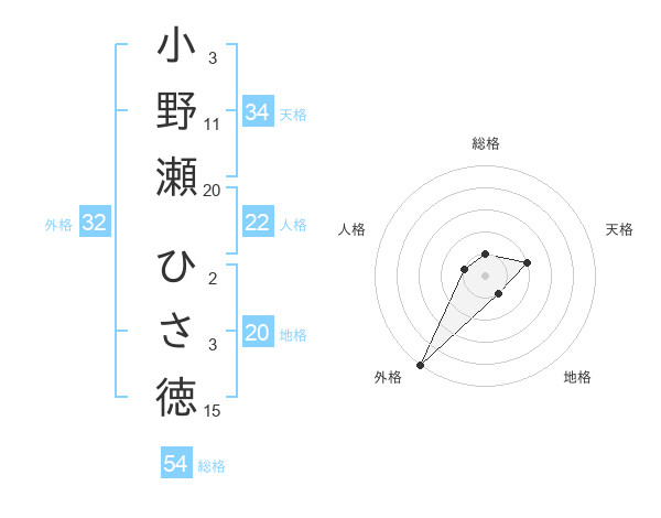 小野瀬 ひさ徳さんの総格は54画の1点!