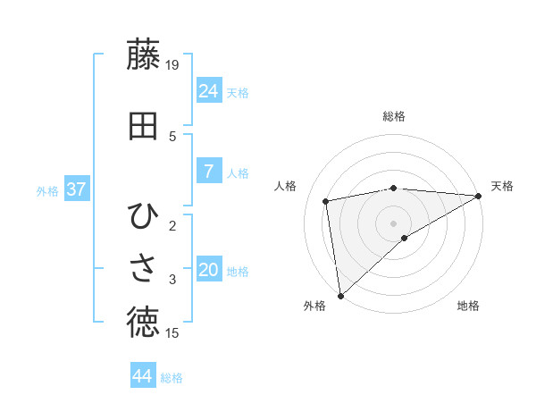 藤田 ひさ徳さんを姓名の画数から五運を鑑定