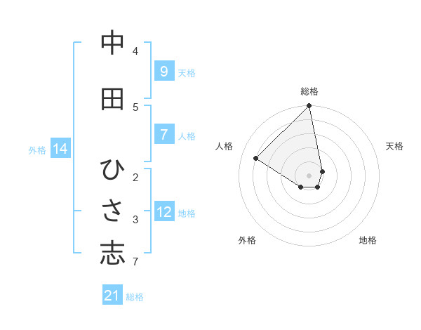 中田 ひさ志さんを姓名の画数から五運を鑑定