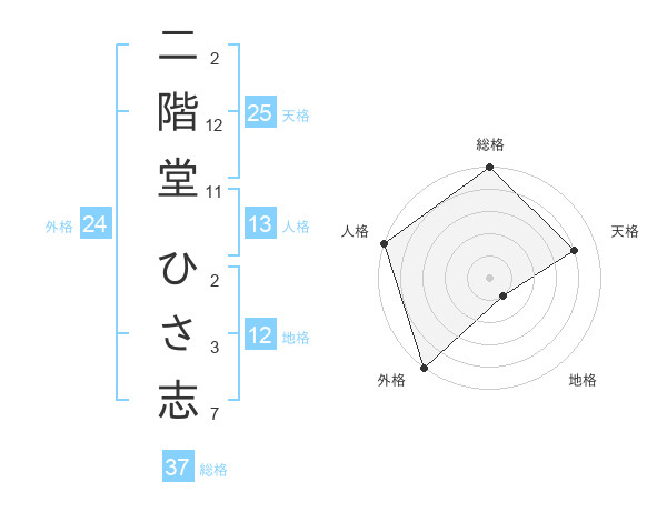 二階堂 ひさ志さんを姓名の画数から五運を鑑定