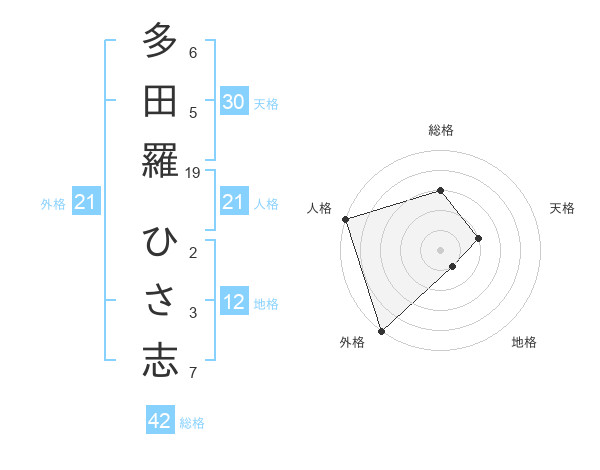 多田羅 ひさ志さんの外格は21画の5点!