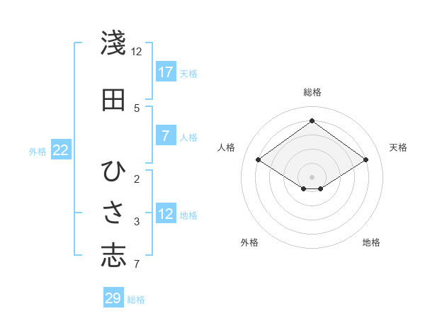 淺田 ひさ志さんの天格は17画の4点!