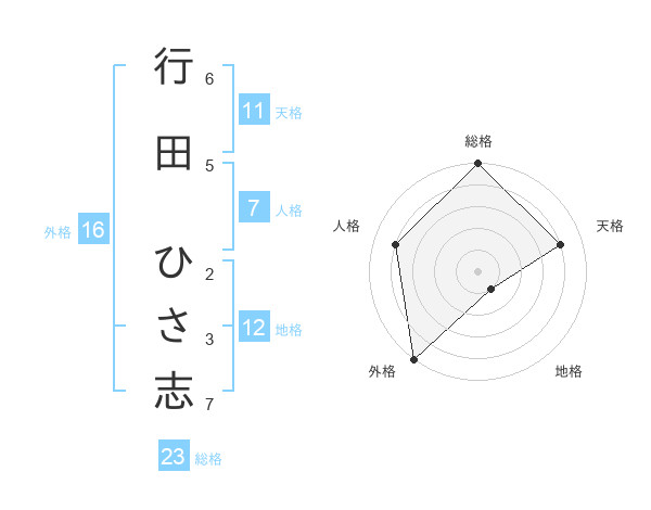 行田 ひさ志さんの外格は16画の5点!
