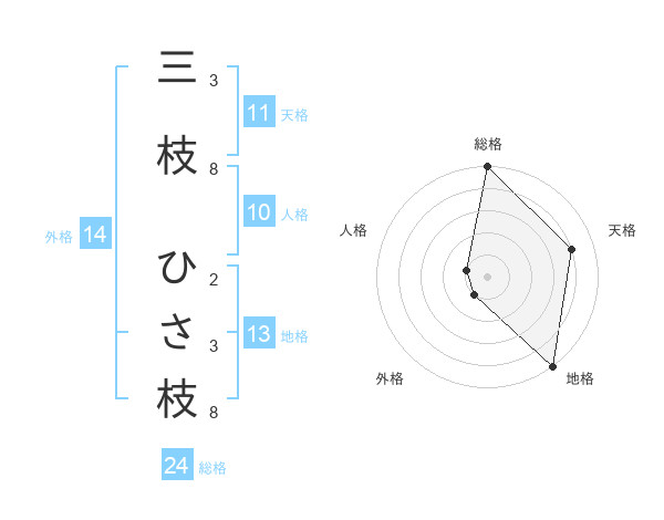 三枝 ひさ枝さんの総格は24画の5点!