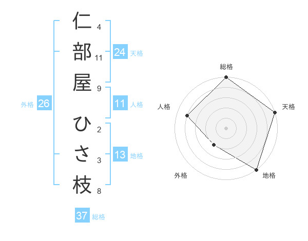 仁部屋 ひさ枝さんの地格は13画の5点!