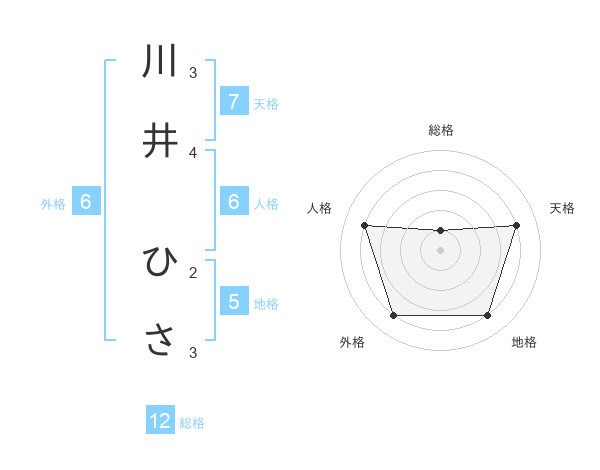 川井 ひささんの天格は7画の4点!
