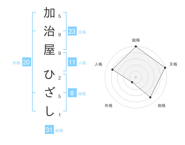 加治屋 ひざしさんを姓名の画数から五運を鑑定
