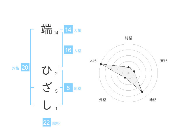 端 ひざしさんの総格は22画の1点!