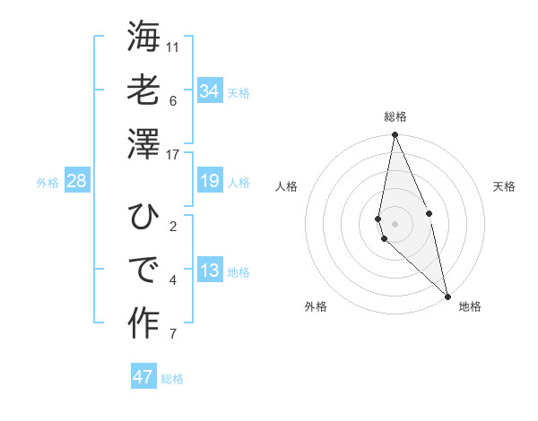海老澤 ひで作さんを姓名の画数から五運を鑑定