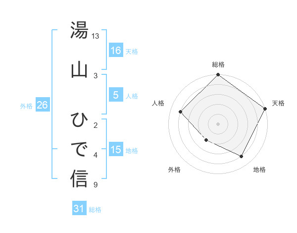 湯山 ひで信さんの総格は31画の5点!