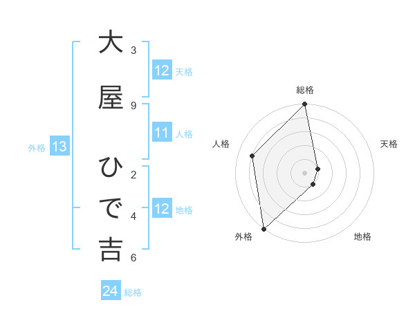 大屋 ひで吉さんの総格は24画の5点!