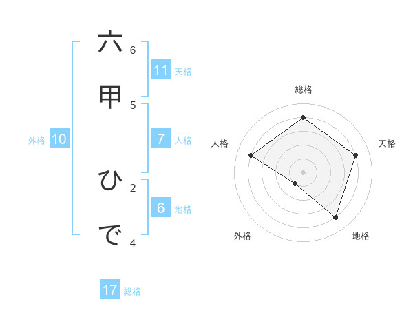 六甲 ひでさんを姓名の画数から五運を鑑定
