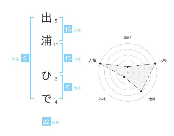 出浦 ひでさんを姓名の画数から五運を鑑定