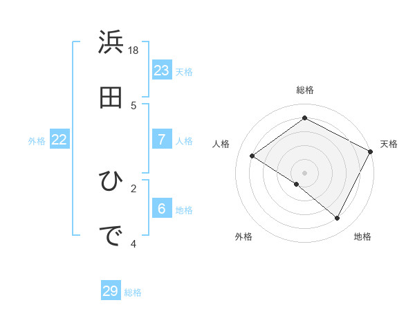 浜田 ひでさんの総格は29画の4点!