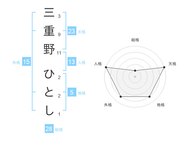三重野 ひとしさんの天格は23画の5点!