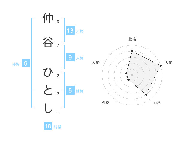 仲谷 ひとしさんの天格は13画の5点!
