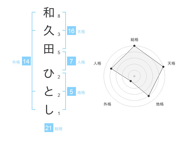 和久田 ひとしさんを姓名の画数から五運を鑑定