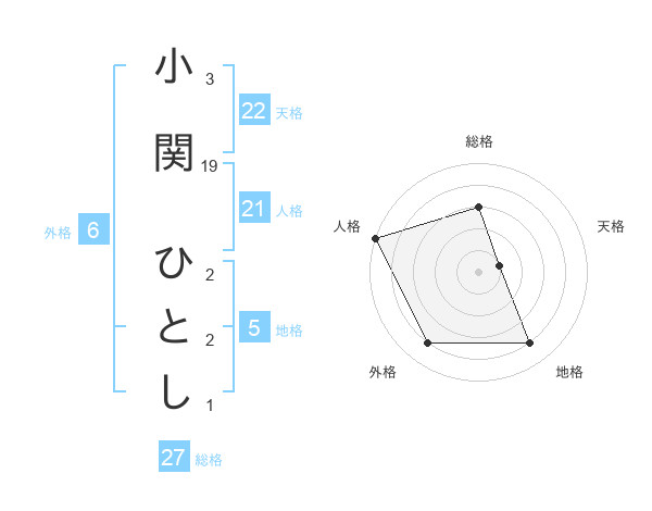 小関 ひとしさんを姓名の画数から五運を鑑定