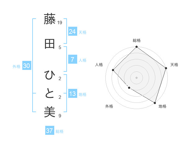 藤田 ひと美さんを姓名の画数から五運を鑑定