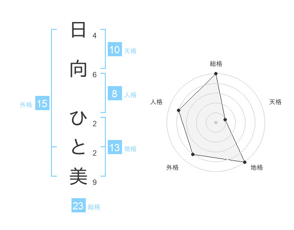日向 ひと美さんを姓名の画数から五運を鑑定