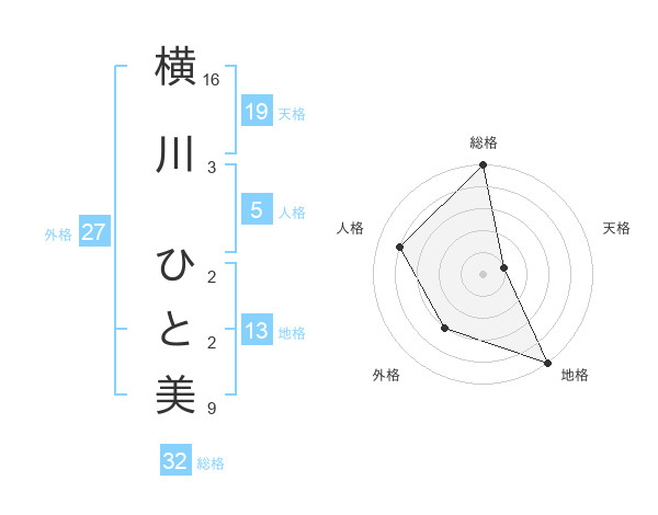 横川 ひと美さんを姓名の画数から五運を鑑定