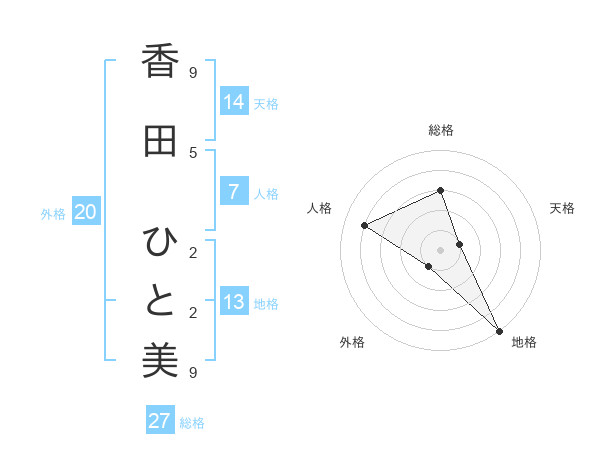 香田 ひと美さんを姓名の画数から五運を鑑定
