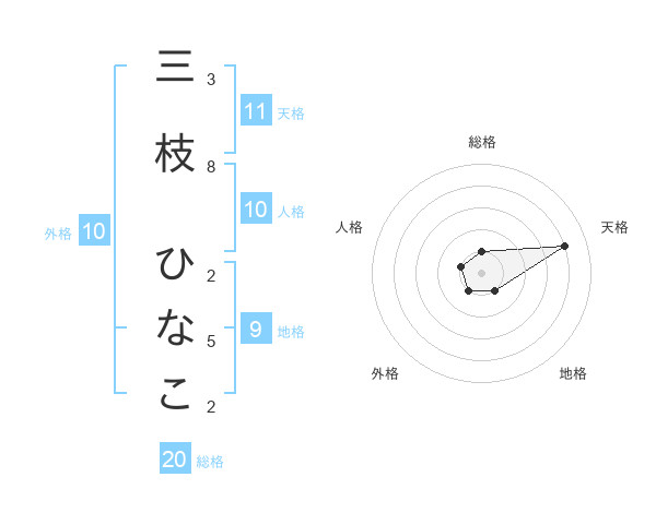 三枝 ひなこさんの外格は10画の1点!