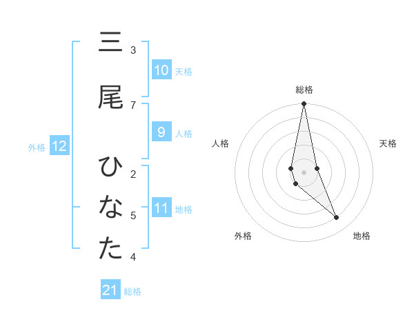 三尾 ひなたさんの総格は21画の5点!