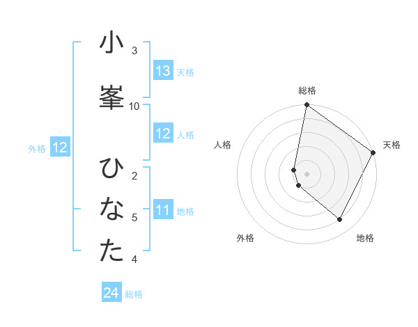 小峯 ひなたさんを姓名の画数から五運を鑑定