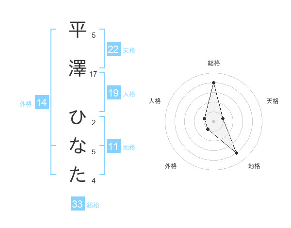 平澤 ひなたさんの総格は33画の4点!