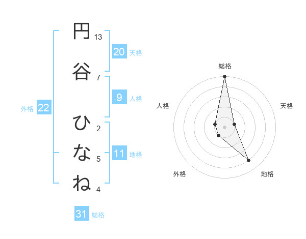 円谷 ひなねさんの総格は31画の5点