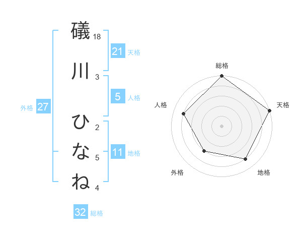 礒川 ひなねさんを姓名の画数から五運を鑑定
