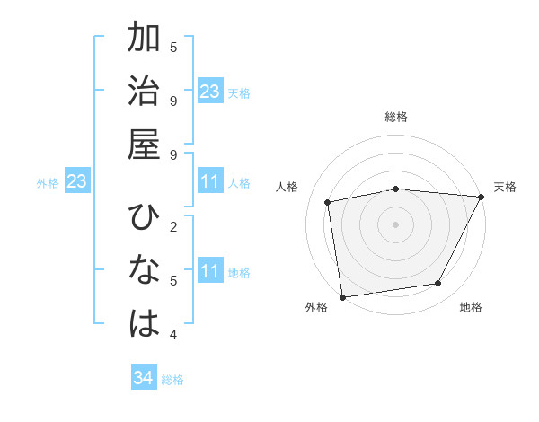 加治屋 ひなはさんを姓名の画数から五運を鑑定