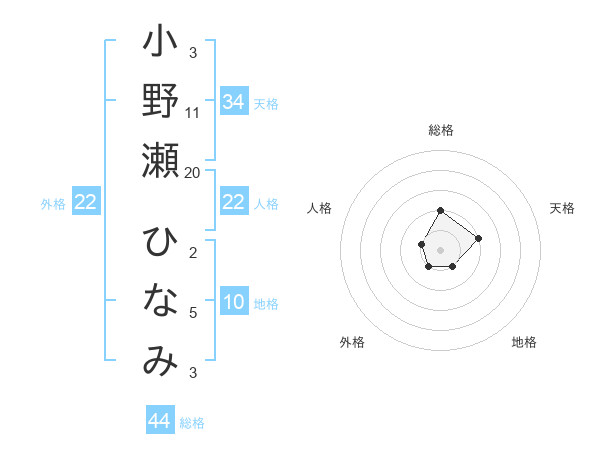 小野瀬 ひなみさんを姓名の画数から五運を鑑定