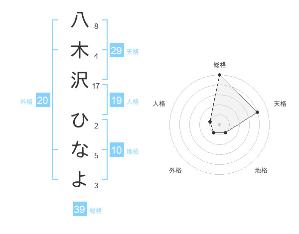 八木沢 ひなよさんの総格は39画の5点!