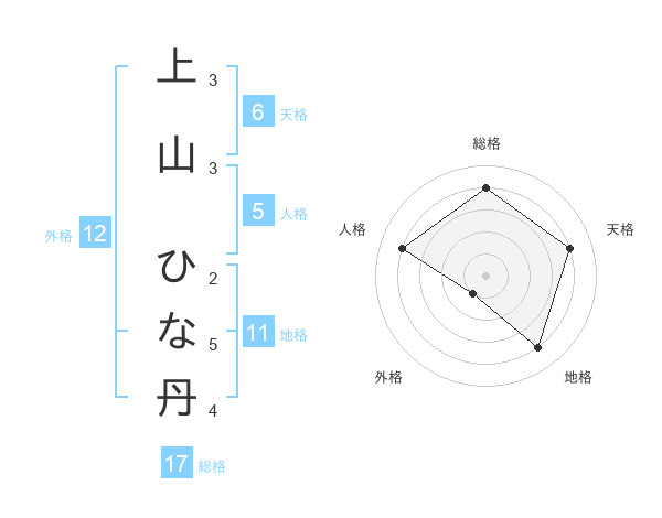 上山 ひな丹さんを姓名の画数から五運を鑑定