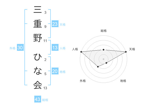 三重野 ひな会さんを姓名の画数から五運を鑑定