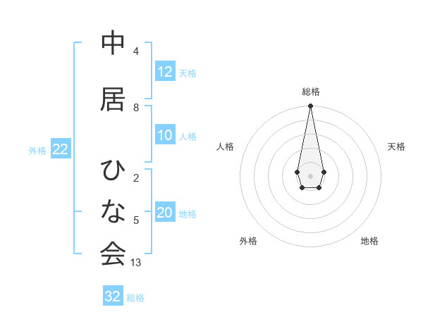中居 ひな会さんを姓名の画数から五運を鑑定
