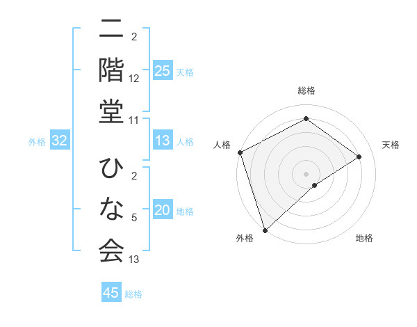 二階堂 ひな会さんの外格は32画の5点!