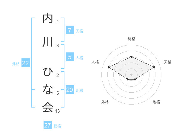 内川 ひな会さんの外格は22画の1点!