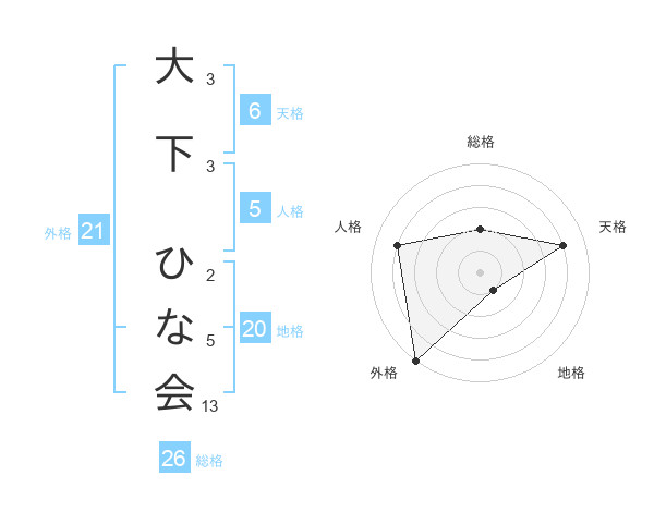 大下 ひな会さんを姓名の画数から五運を鑑定