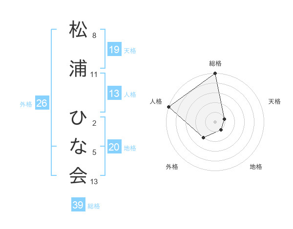 松浦 ひな会さんの総格は39画の5点
