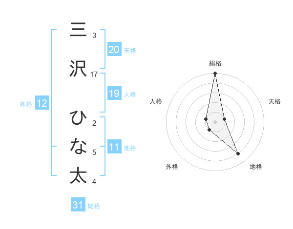 三沢 ひな太さんの総格は31画の5点!