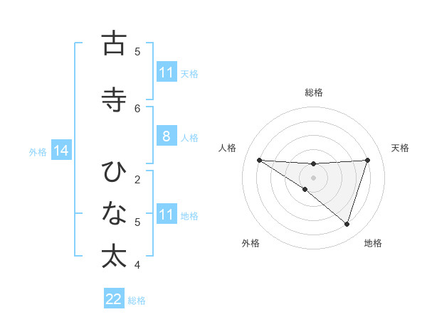 古寺 ひな太さんを姓名の画数から五運を鑑定