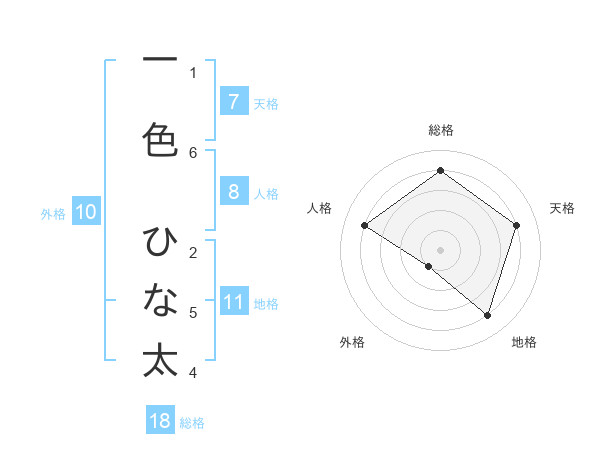 一色 ひな太さんを姓名の画数から五運を鑑定