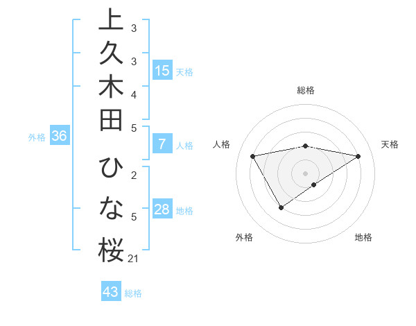 上久木田 ひな桜さんを姓名の画数から五運を鑑定