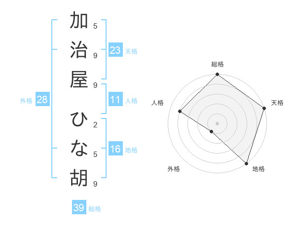 加治屋 ひな胡さんの天格は23画の5点!