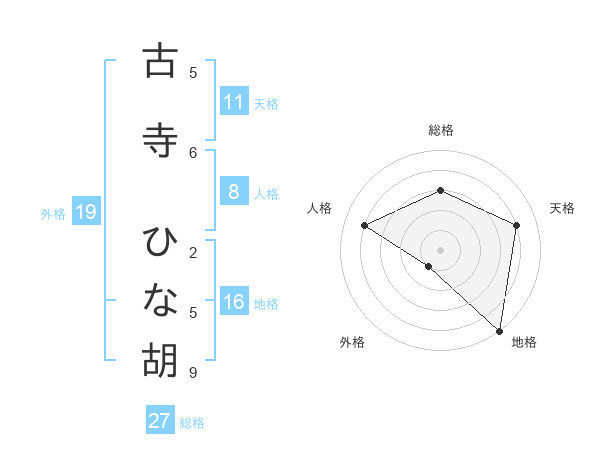 古寺 ひな胡さんを姓名の画数から五運を鑑定